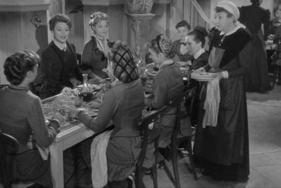In addition to elevating Olivia as a promising student, Julie also encourages her in other ways. Here, we see Julie inviting Olivia to sit at her right hand after having critiqued the food she was served at table. A vexed and attention-starved Cara sits at Julie’s left hand waiting to cause a scene: